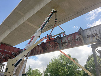 As part of this multi-phase infrastructure project, GCCOM was contracted to dismantle the original structural steel approaches while a new roadway was being constructed approximately 65 feet above.